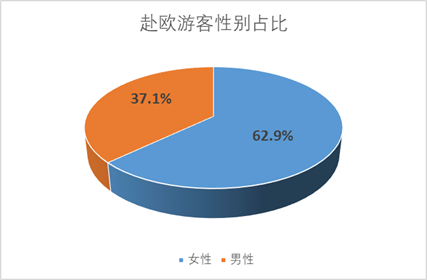 从游客的性别年龄分析来看,西安赴欧洲游客女性占比62.9 %,男性占比 37.1% 。西安游客“50后”“60后”合计超过50%,“70后”以12.7%的占比位居第三。从人均消费看,2019年上半年西安游客报名欧洲跟团游,平均花费11920.7元,高钻级产品占比近八成,其中,四钻舒适型占比63.0%,五钻及以上产品占比12.1%。